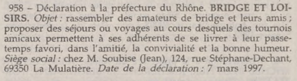 L’association Bridge et Loisirs a été crée le 7 mars 1997